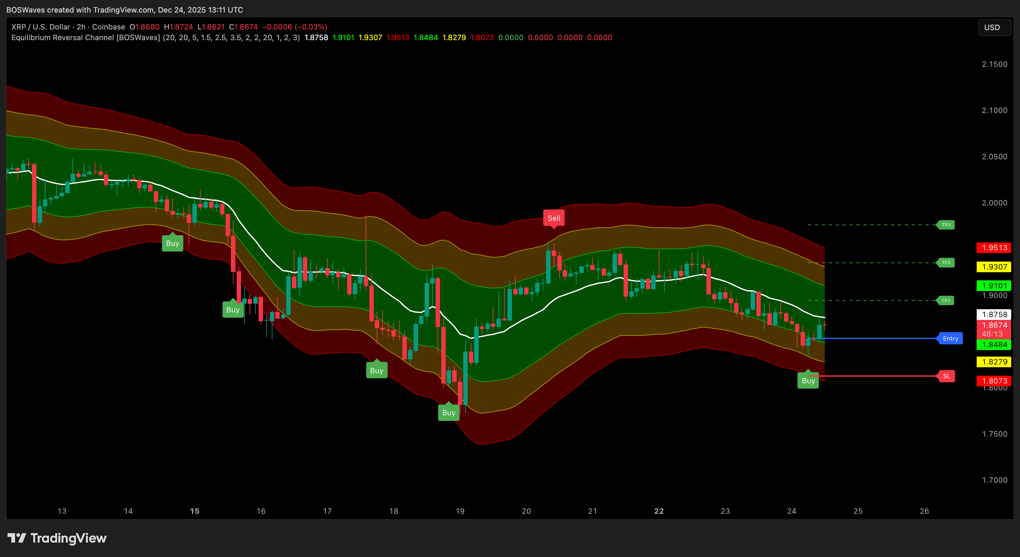 - Built-in TP/SL framework derived from channel structure, not arbitrary values