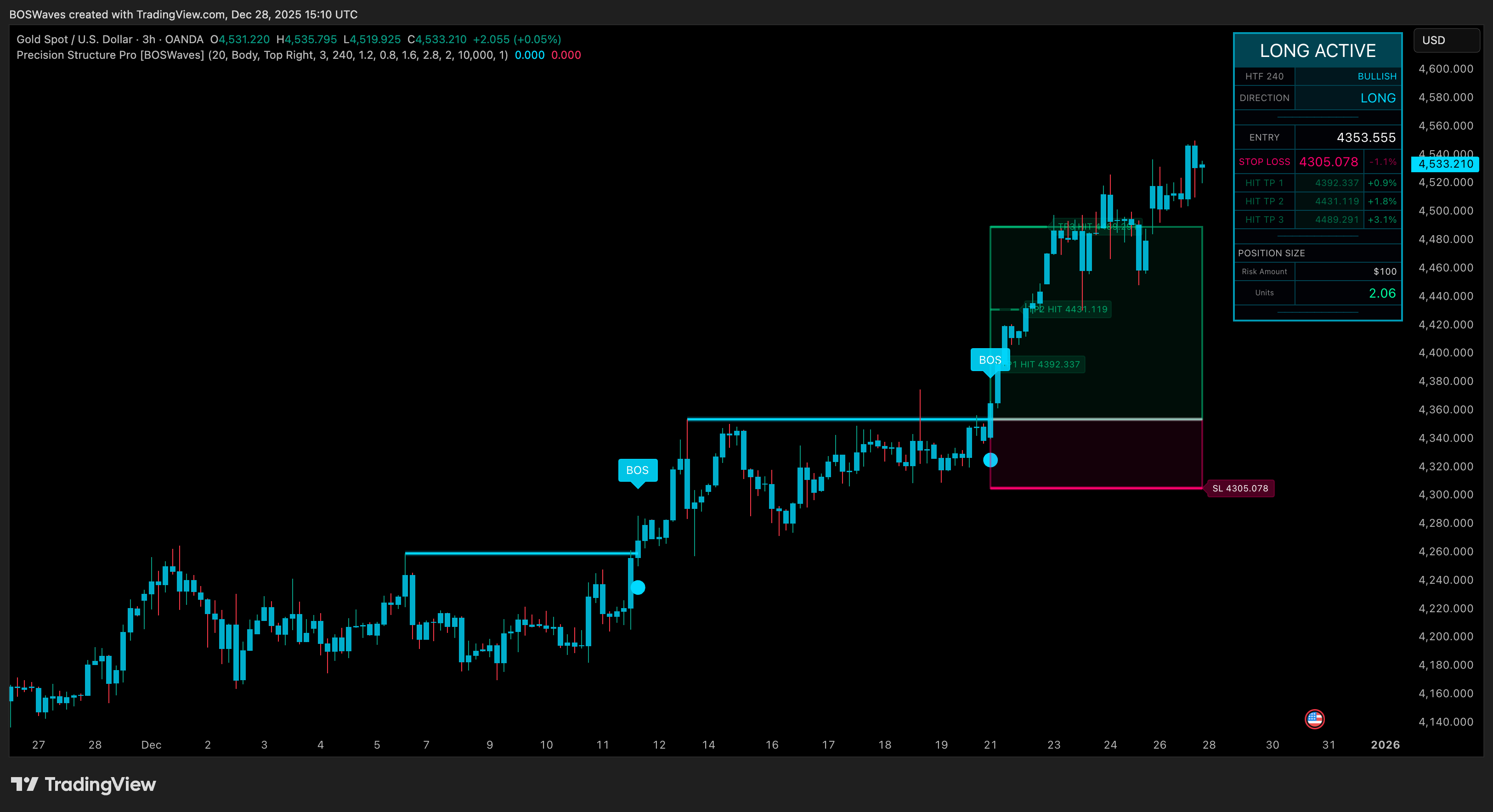 - Volatility-adaptive stop-loss with tiered take-profit targets (0.8R / 1.6R / 2.8R)